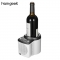 The beverage cooler and warmer is operated by a reversible thermo-electric heat pump, which is automatically regulated by an internal temperature regulator. The internal CPU regulates temperature by comparing the thermistor sensor value with 5 temperature values stored in memory. The device is able to hold cans, bottles up to 500ml, which includes most standard soft drink cans and small wine bottles. By confining the energy source in s small space, the cooling and heating process is mush faster than most mini fridges. And thus it is suitable for maintaining a constant temperature. For example, it can be used to keep the temperature of a bottle of white constant at the ideal temperature of 7°C(45°F) over the course of a long meal.
