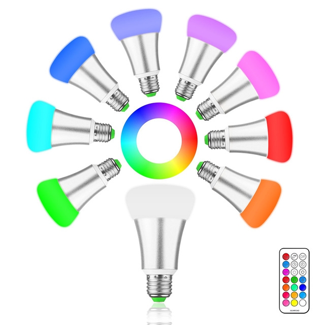 Brightness 10W RGB E27 LED Bulb Light Stage Lamp 12 Colors with Remote Control Led Lights for Home AC 85-265V RGB + Cool White