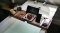 A laptop can sit on it. However, if the laptop is wider than 26.4 cm, there won't be space for much more on the main frame of the tray.