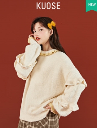 Sweet age reduction contrast color flapped sweater