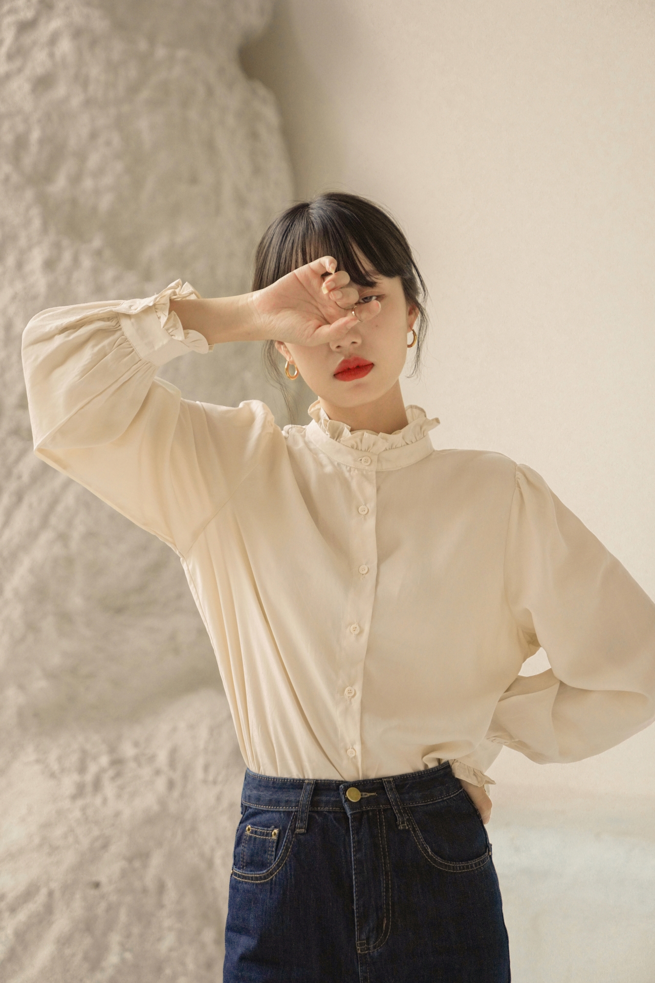 French vintage shirt with long sleeves rice white$25.00