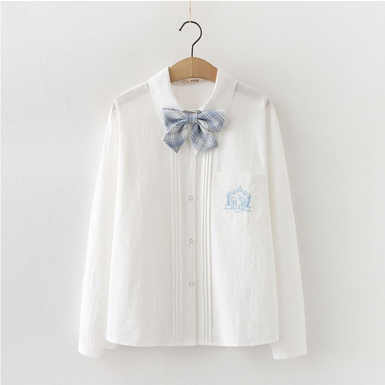 • Woman School Uniforms Embroidery Shirts Sexy Colla
