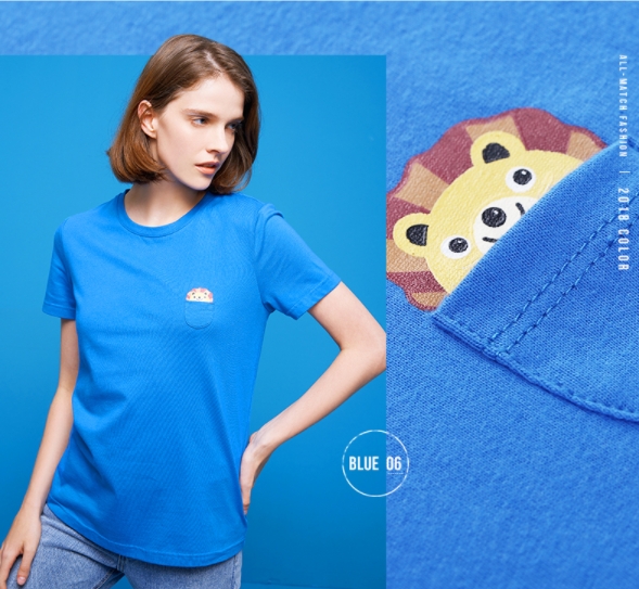 初语2018夏装新款可爱女装上衣熊猫印花短袖红色基础款纯棉T恤 海普蓝 XS