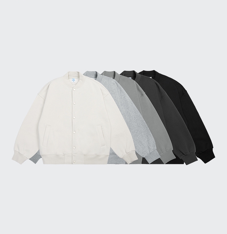 高街欧美潮流350g克重加绒宽松纯色棒球服夹克卫衣外套男DE990013