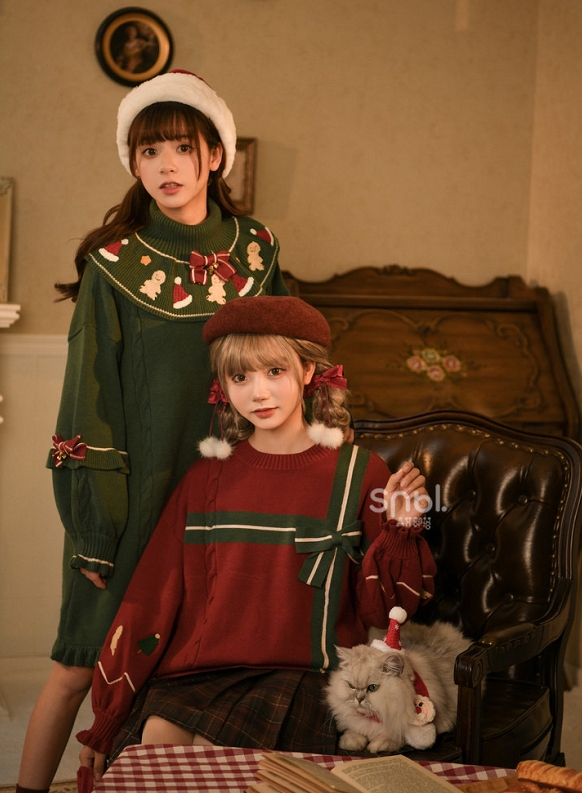 圣诞闺蜜女装褒义复古针织连衣裙裙子秋冬