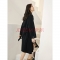 撞色纽扣纯羊绒毛呢外套女 2021年新品舒适保暖毛呢大衣女中长款 静谧黑 S