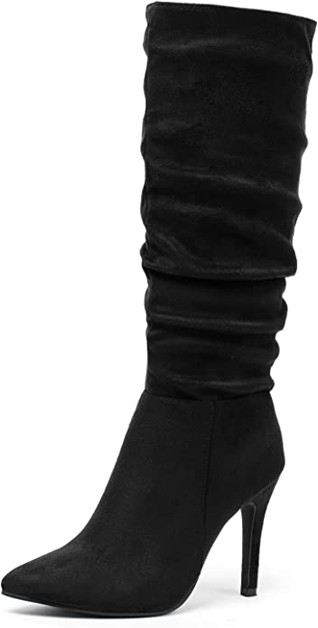 新女式麂皮及膝靴尖头细高跟靴休闲拉链高跟靴 浅棕色 10.5$120.00