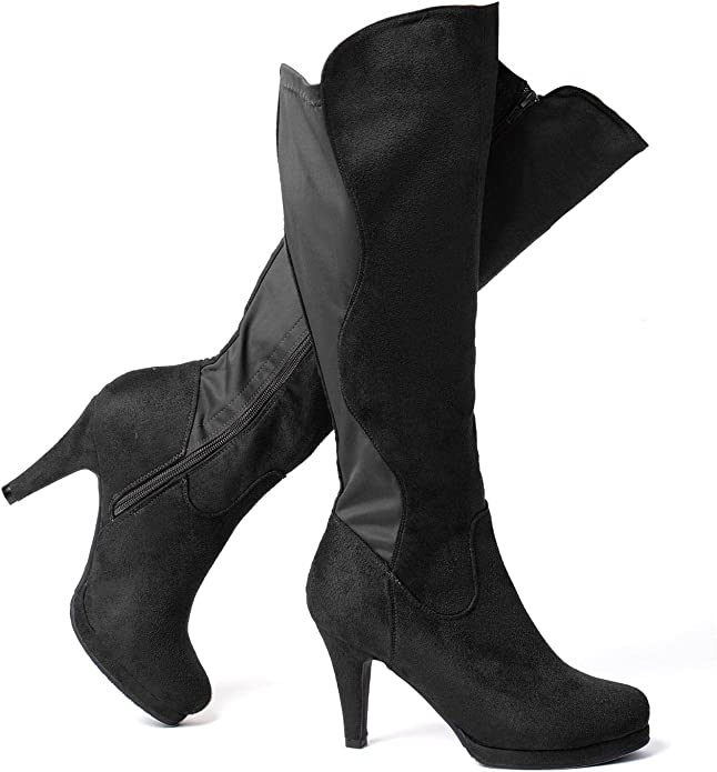 女式麂皮及膝靴尖头细高跟靴休闲拉链高跟靴 棕色 10$110.00