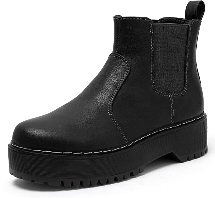 女式防水台及踝靴切尔西弹性短靴时尚一脚蹬靴 棕色 10$100.00