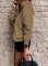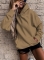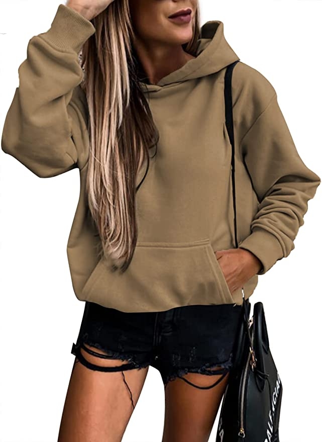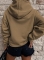 女士休闲连帽衫长袖实心轻量级套头衫上衣宽松卫衣带口袋 浅棕色 M