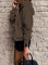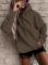 女士休闲连帽衫长袖实心轻量级套头衫上衣宽松卫衣带口袋 深棕色 L