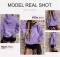 女士休闲连帽衫长袖实心轻量级套头衫上衣宽松卫衣带口袋 紫色 XXL