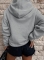 女士休闲连帽衫长袖实心轻量级套头衫上衣宽松卫衣带口袋 灰色 XXL