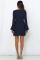 女装长袖紧身短裙圆领荷叶边袖腰系带结可爱鸡尾酒会迷你连衣裙 藏青色 L