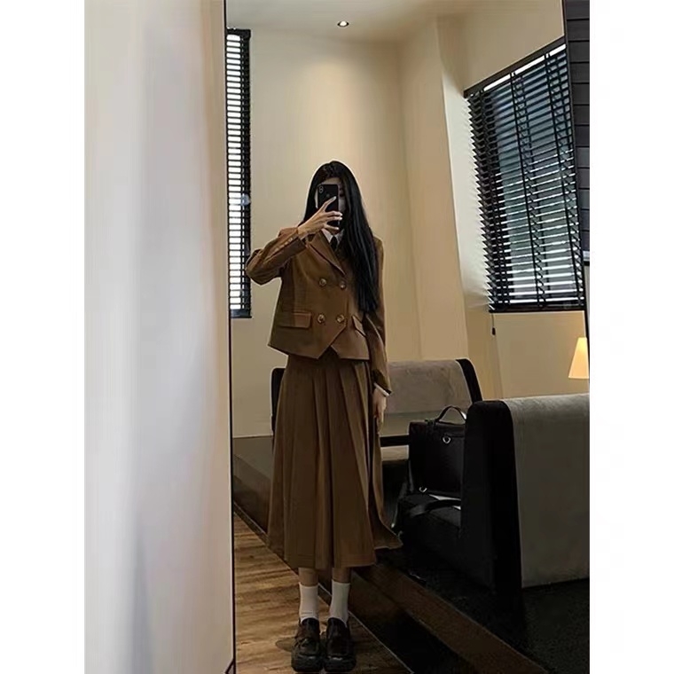 2022年新款茶系小个子学院风毛衣针织包臀辣妹套装$50.00