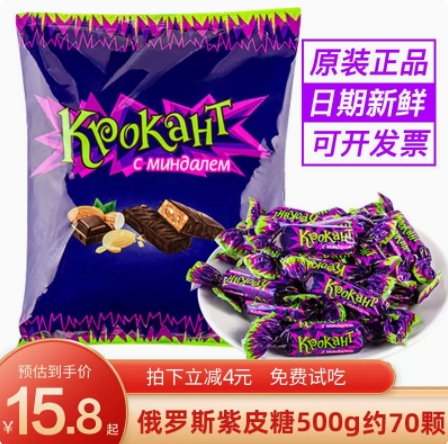 kdv俄罗斯紫皮糖原装正品kpokaht巧克力进口糖果零食喜糖批发散装