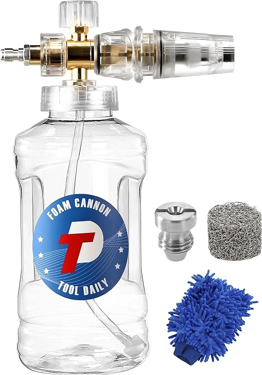 泡沫不渗漏:化学家伙泡沫炮的*大工作压力为 3600 PSI。 容器瓶有一个更大的嘴巴易于填充和一个超宽颈部,以防止裂缝问题, 并且不会泄漏。 泡沫喷雾器带1/4英寸(约0.6厘米)适合容器容量:1.5升/ 0.33加仑(约3.8升)。 *的泡沫调节开关在清洁过程中有效提供足够的泡沫。 用于高压清洗机的大容量泡沫炮可以让您增加清洁数量和时间。
