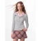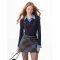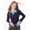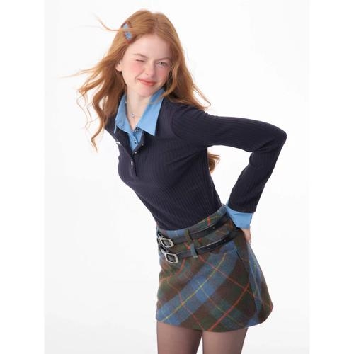 秋冬美式复古设计感喇叭袖假两件上衣修身Polo领针织衫女
