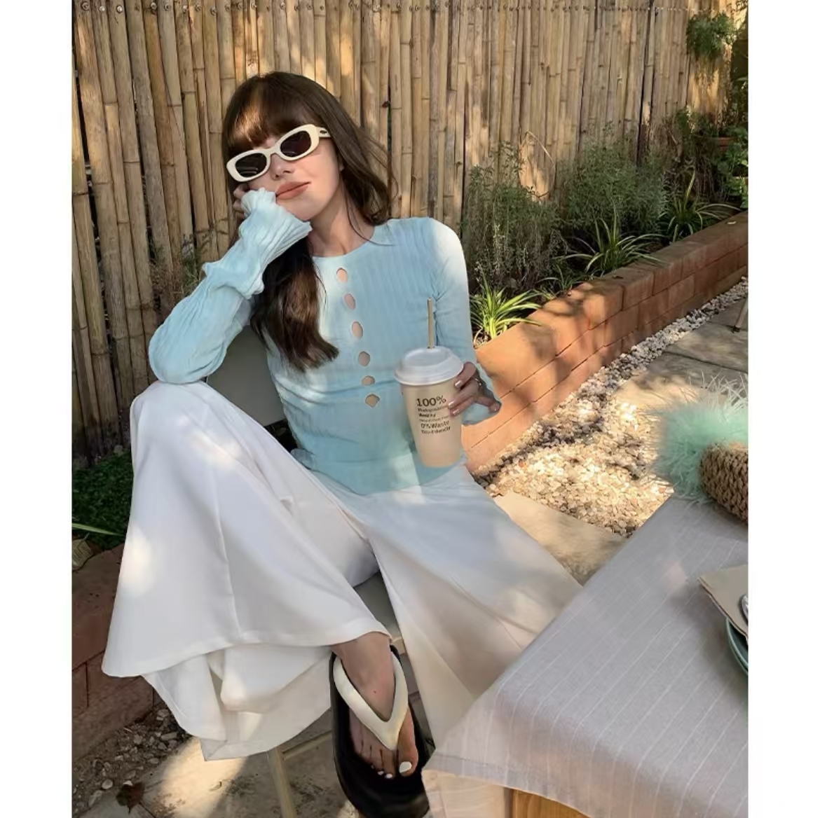安哥拉红撞色小众设计假两件针织衫毛衣 浅绿色 s$120.00