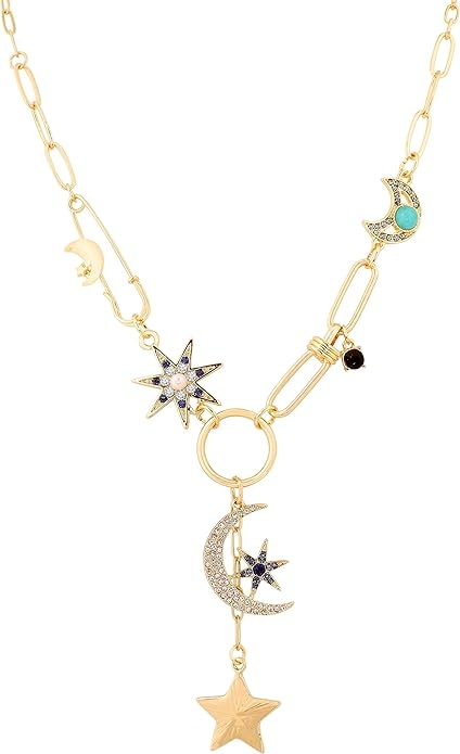 Sacina 金色魅力吊坠项链,女士魅力项链,回形针项链,波西米亚项链,西式项链,复古项链,圣诞珠宝