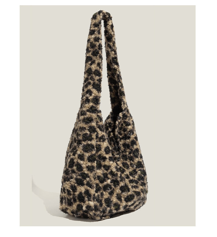 韩系复古慵懒风托特包2024新款毛绒豹纹大容量单肩包