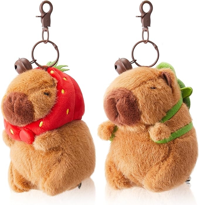 2 件 Capybara 毛绒钥匙扣逼真水豚填充动物玩具水豚吊坠派对背包生日礼物