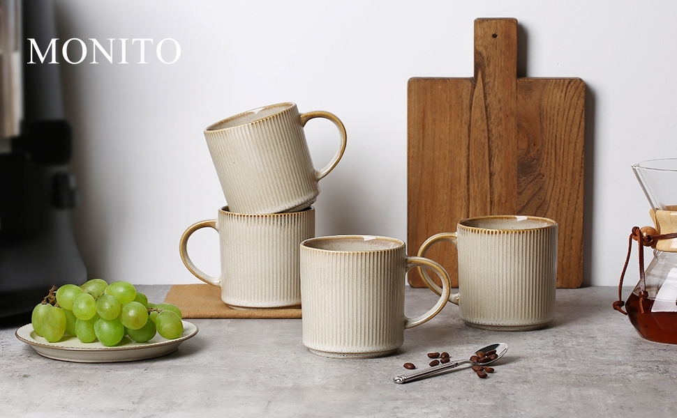咖啡杯 4 件套,16 盎司马克杯套装,陶瓷咖啡杯带大手柄,适合拿铁、热茶、卡布奇诺、摩卡和可可 -