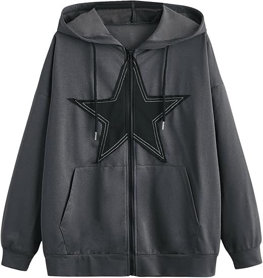 Home> Clothing, Shoes & Jewelry> Women> Clothing> STAR 女式星星印花拉链超大长袖休闲口袋抽绳连帽衫