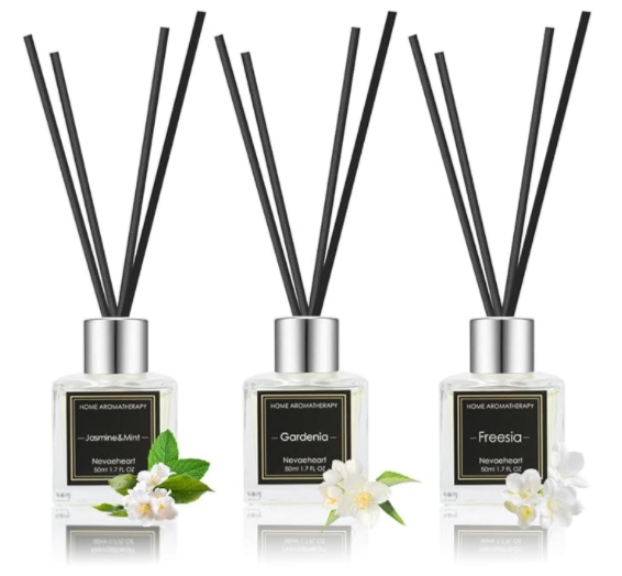 芦苇扩散器套装,栀子花/小苍兰/茉莉花和薄荷芦苇扩散器礼品,1.7 盎司(约 48.2 克)x 3