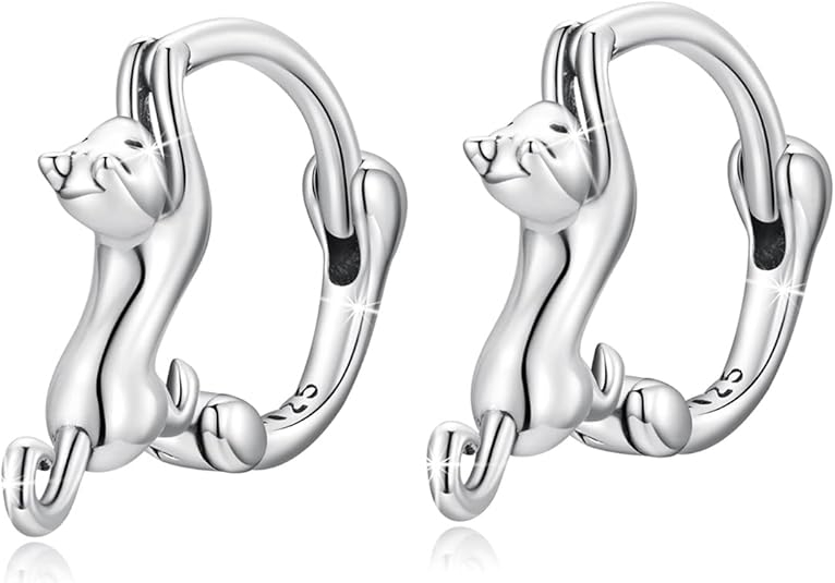 HOPE LOVE SHINE纯银可爱猫环状耳环 适合猫咪爱好者 蛇形耳扣 防过敏小环状耳环 个性精