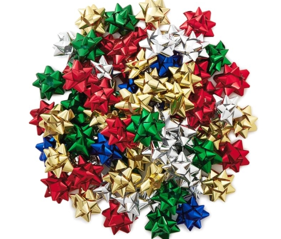 7.62 厘米礼品蝴蝶结假日组合(75 个蝴蝶结:红色、金色、绿色、银色、蓝色),适合圣诞节、光明节