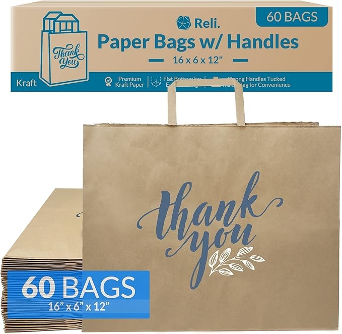Reli.纸质购物袋 带手柄 | 60 件 | 大号 40.64 厘米 x 15.24 厘米 x 3